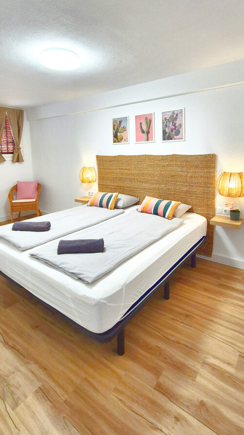 Az apartman Las Américas legjobb részén, a parttól 150 méterre helyezkedik el, az épületben összesen 3 apartmanunk, akár egy időben is bérelhető, így nagyobb, maximum 12 fős társaság is, akár együtt, de mégis szeparáltan tud pihenni.