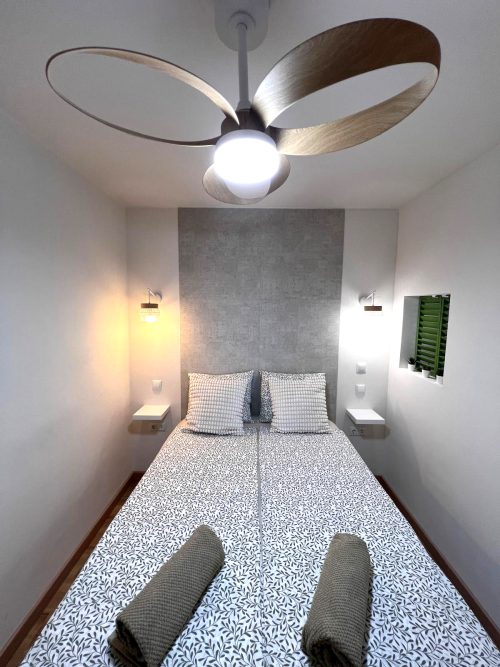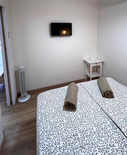 A franciaágyas hálószoba mellett a nappaliban egy nagy kihúzható kanapé áll rendelkezésre, így akár 4 felnőtt számára is kényelmes.