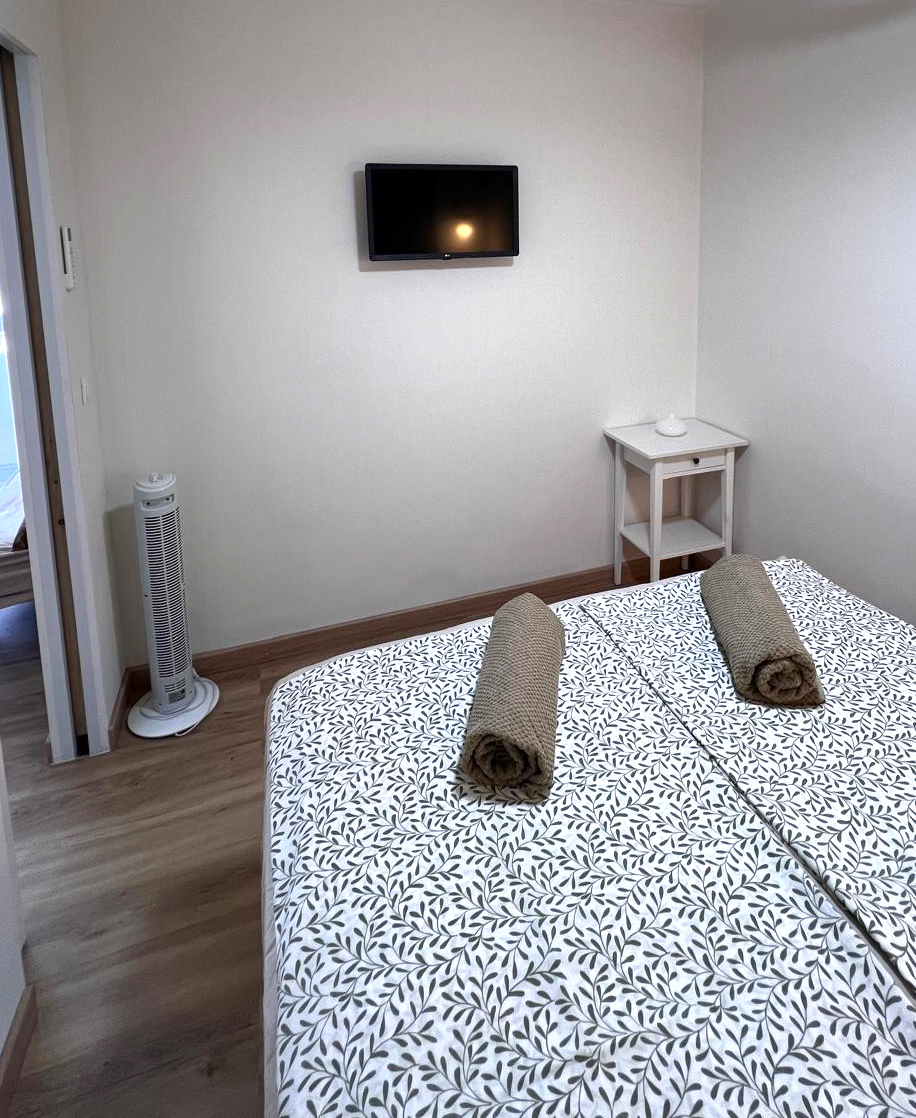 A franciaágyas hálószoba mellett a nappaliban egy nagy kihúzható kanapé áll rendelkezésre, így akár 4 felnőtt számára is kényelmes.